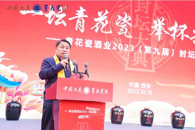 好酒知時節(jié),秋釀貴如金。2023年10月18日,青花瓷酒業(yè)集團第九屆封壇大典“一壇青花瓷·舉杯共長安”于陜西省西安市大唐西市隆重舉行。青花瓷品牌創(chuàng)始人朱德寧,青花瓷酒業(yè)集團股份有限公司董事長朱明出席了本次封壇大典。此外,蒞臨本次活動的還有原全國政協(xié)委員、陜西省政協(xié)副主席、陜西省統(tǒng)戰(zhàn)部部長周一波,山西省杏花村經(jīng)濟技術(shù)開發(fā)區(qū)常務(wù)副主任郝耀光,中國食品工業(yè)協(xié)會副秘書長楊強,國家級釀酒大師、陜西酒業(yè)協(xié)會會長賈智勇,山西省青少年事業(yè)發(fā)展中心主任、山西省青少年發(fā)展基金會理事長張華,陜西團省委希望工程公益志愿指導(dǎo)中心主任、陜西省青少年發(fā)展基金會理事長烏鋼,山西省汾陽市原人大主任田樹漢,山西省太原市原地稅局局長張云山,著名白酒專家、中國白酒品評普及推廣第一人、四川源坤教育創(chuàng)始人鐘杰,西安溫州商會會長鄭賢桂,著名戰(zhàn)略咨詢專家、北京卓鵬戰(zhàn)略咨詢機構(gòu)董事長田卓鵬,西安新慶酒業(yè)有限公司總經(jīng)理李路等領(lǐng)導(dǎo)以及來自全國各地優(yōu)秀經(jīng)銷商代表們。